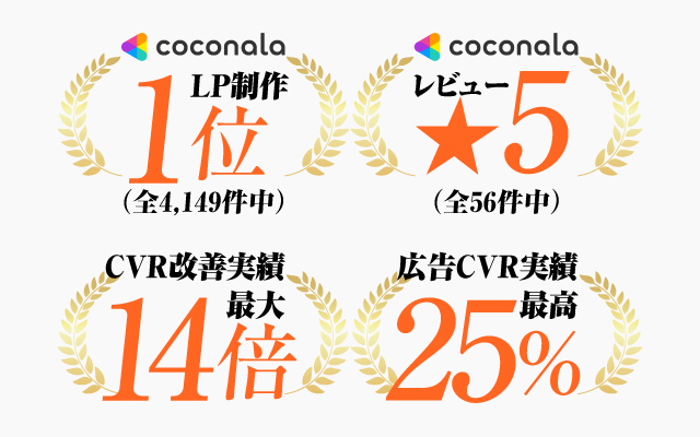 セールスデザインの専門資格保有、ココナラランキング1位獲得など、第三者評価による信頼と品質。クオリティの高いLPで、初めての方でも安心して依頼いただけます。